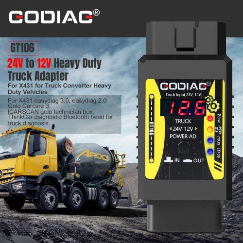 We only Provide GT106 12V to 24V adapter, You need to get diagnostic software for trucks and other heavy duty vehicles.