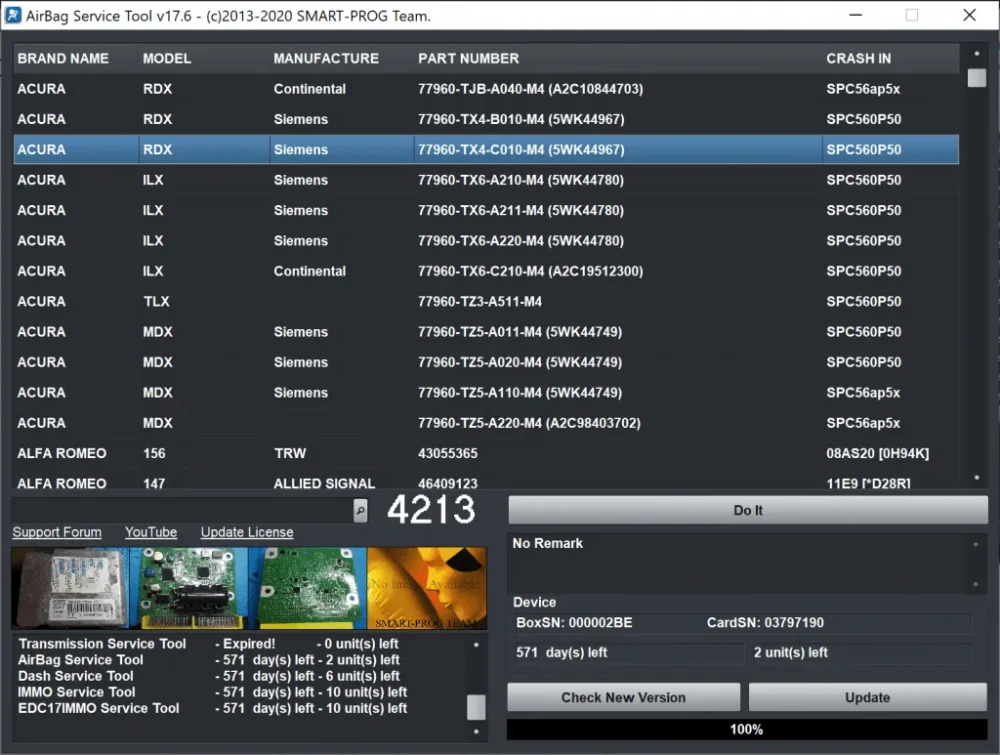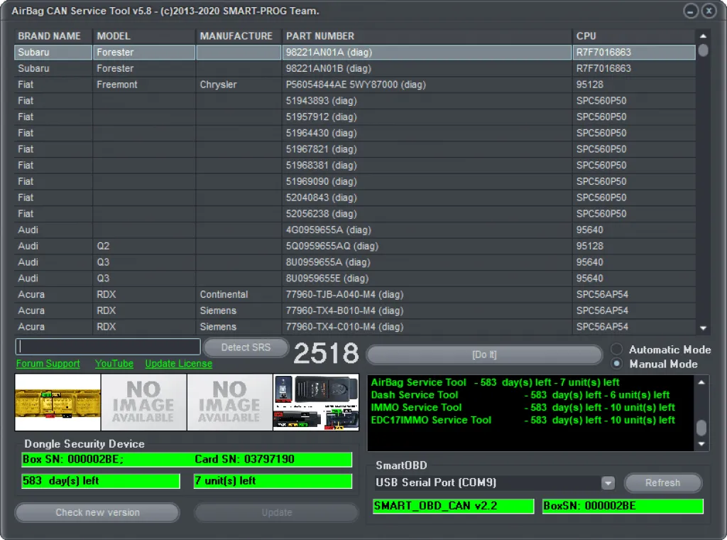 • AirBag CAN Service Tool / SmartOBD CAN Tool – 365 days (unlimited calculation per 1 year)