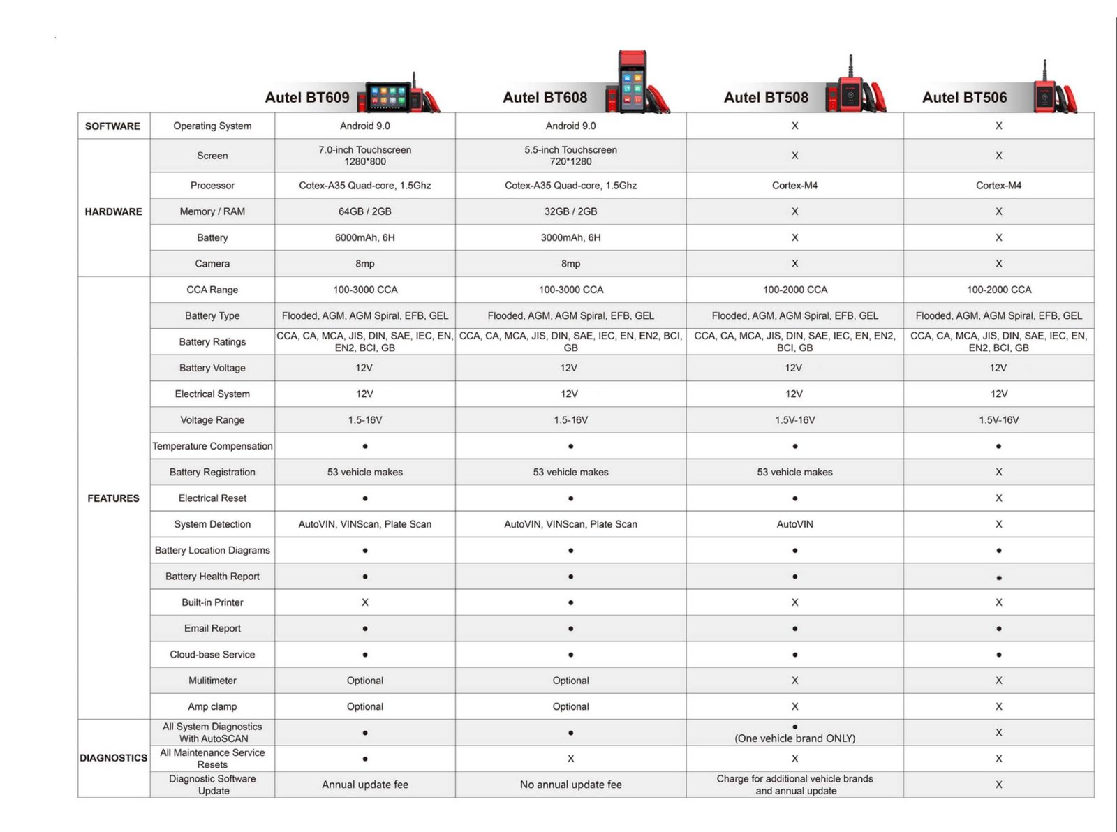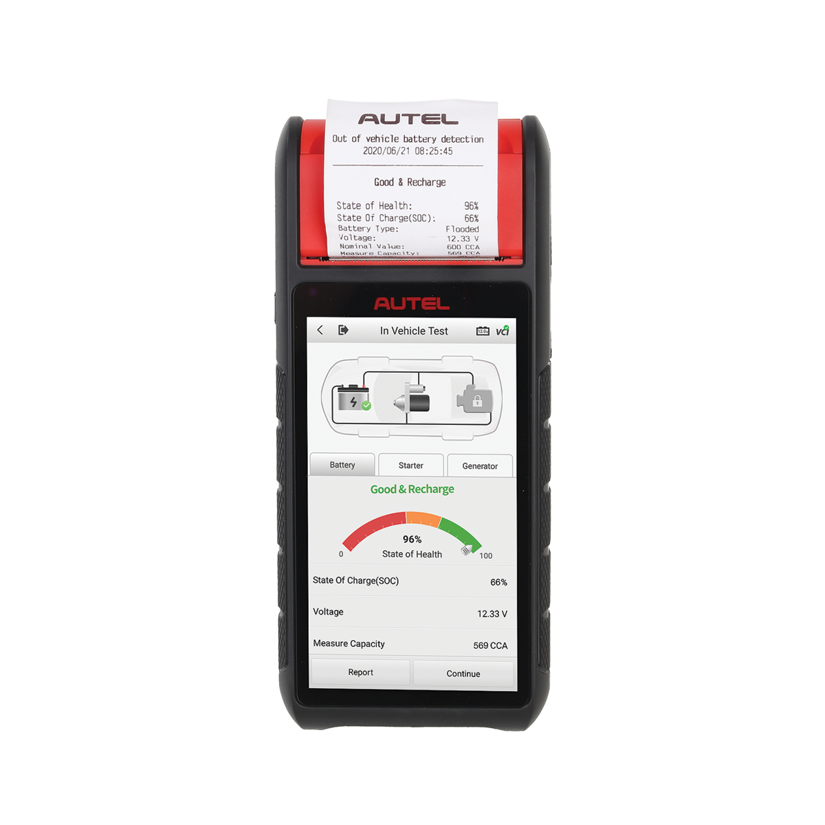 The BT608 is a touchscreen Battery & Electrical System analyzer that applies Adaptive Conductance, an advanced battery analysis method that produces a more accurate examination of the battery’s cold cranking ability and reserve capacity, vital to determining a battery’s true health. The BT608 can display a quick health status of the existing battery, register a new battery and perform advanced battery and electrical system diagnostics. The BT608’s VINscan function enables quick identification of the vehicle and battery specifications. Read/Clear codes on all available vehicles systems. Print or share customized reports via Wi-Fi or print test reports via the built-in thermal printer.