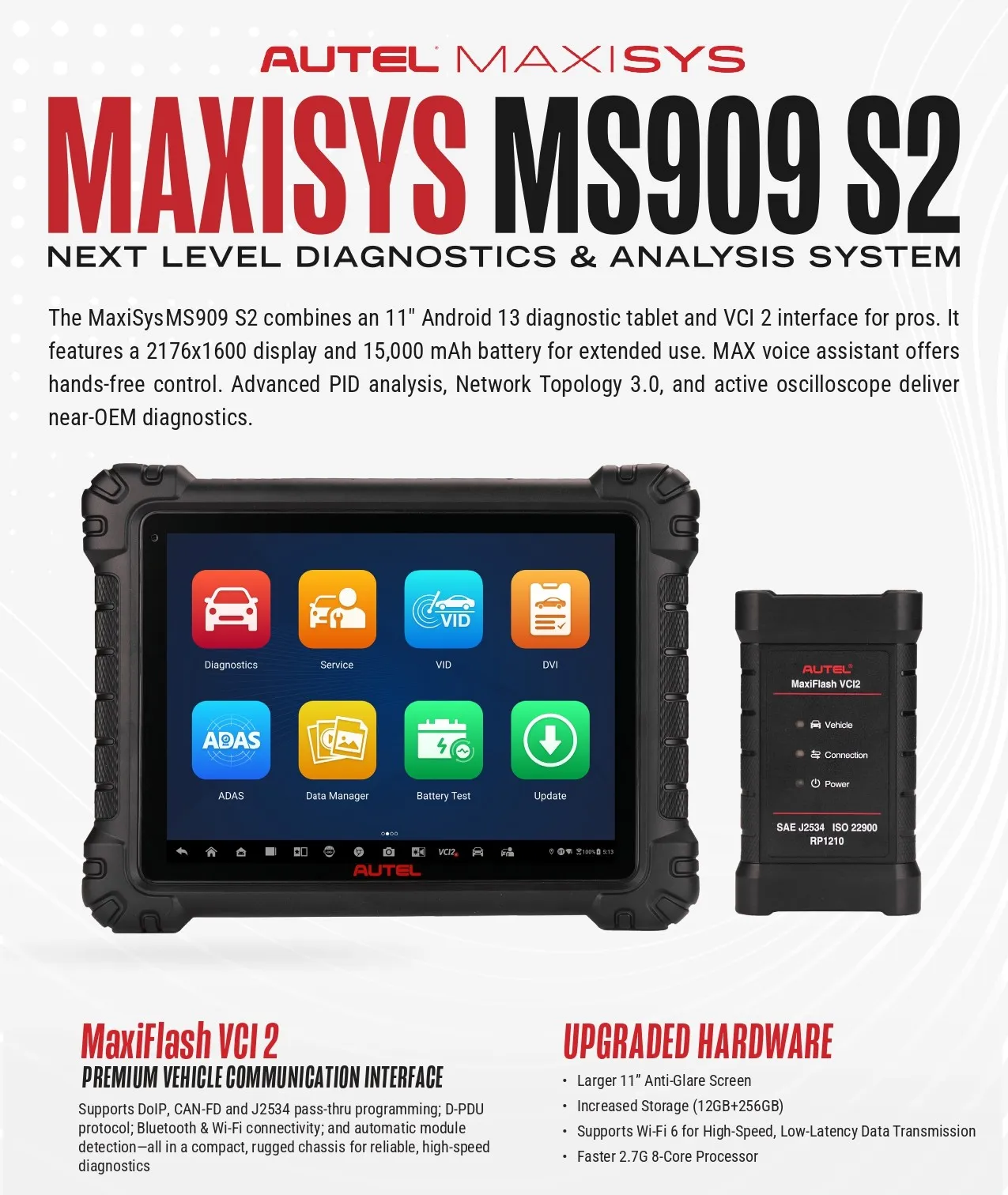 Autel MaxiSYS MS909 S2 Advanced AI Diagnostic Tool with MaxiSYS Grade VCI2