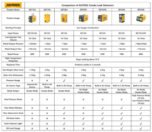 - Overheat and anti-freeze protection: The latest intelligent protection devices equip the Autool SDT203 Smoke Detector Machine. When the temperature exceeds 75℃ the protection device will only activate and shut down the power supply to protect the operator and the equipment. Not only is it protected against high temperatures, but it is also suitable for low-temperature operation.