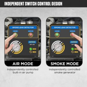 - Air Mode & Smoke Mode: Built-in air pump and smoke generator, so it does not rely on an additional air machine, perfect for Mobile Automotive Repair! The device produces smoke within 10 seconds, dramatically reducing diagnostic time.Smoke output value: 6L/min.