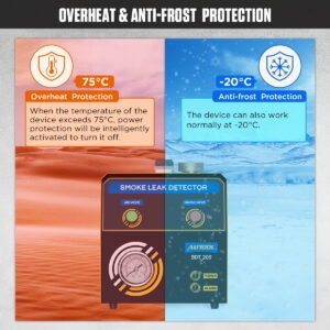 - Overheat and anti-freeze protection: The latest intelligent protection devices equip the Autool SDT205 Smoke Detector Machine. When the temperature exceeds 75℃ the protection device will only activate and shut down the power supply to protect the operator and the equipment. Not only is it protected against high temperatures, but it is also suitable for low-temperature operation.