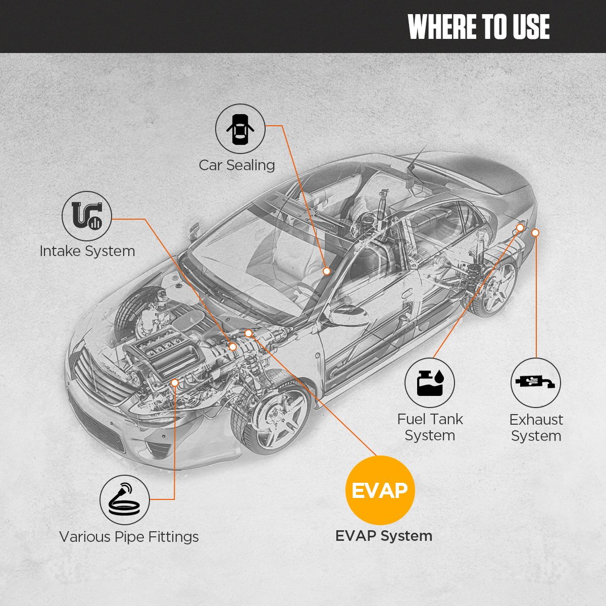 AUTOOL smoke leak detectors can test leaks in the EVAP system. The package is equipped with professional fuel EVAP testing tools, you can choose proper tools to test.