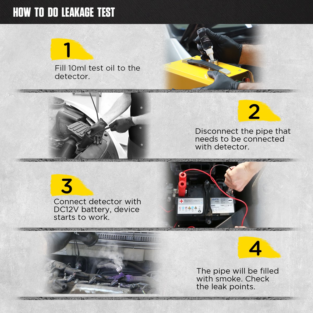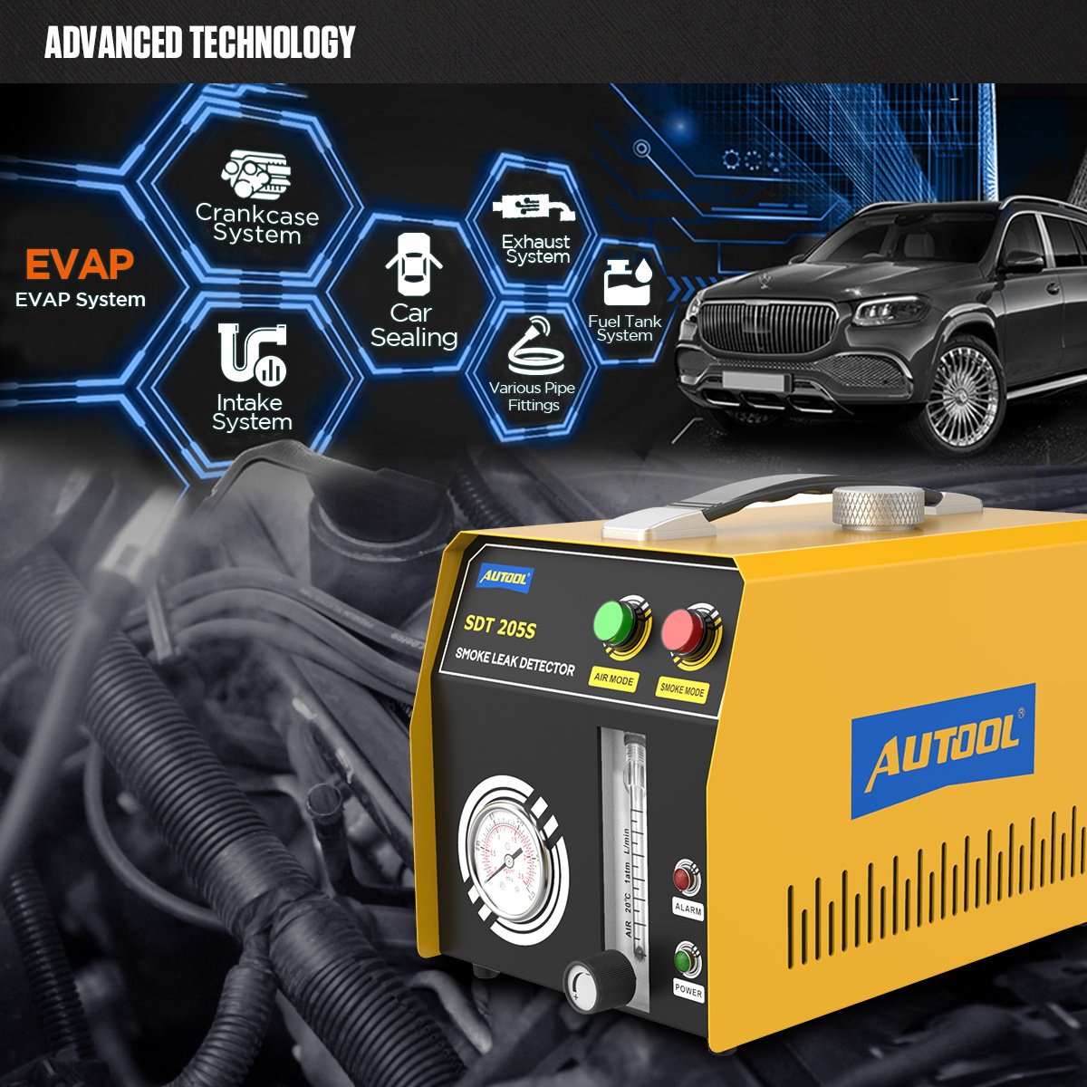 AUTOOL smoke leak detectors can test leaks in the EVAP system. The package is equipped with professional fuel EVAP testing tools, you can choose proper tools to test.