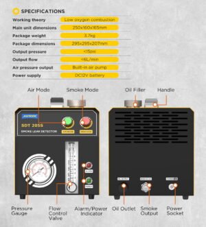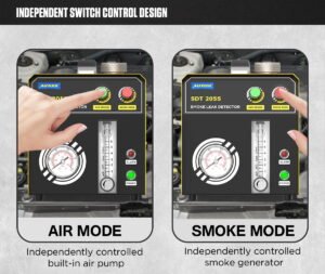 - Air Mode & Smoke Mode: Built-in air pump and smoke generator, so it does not rely on an additional air machine, perfect for Mobile Automotive Repair! The smoke can be produced within 10 seconds, dramatically reducing diagnostic time. Smoke output value: 6L/min.