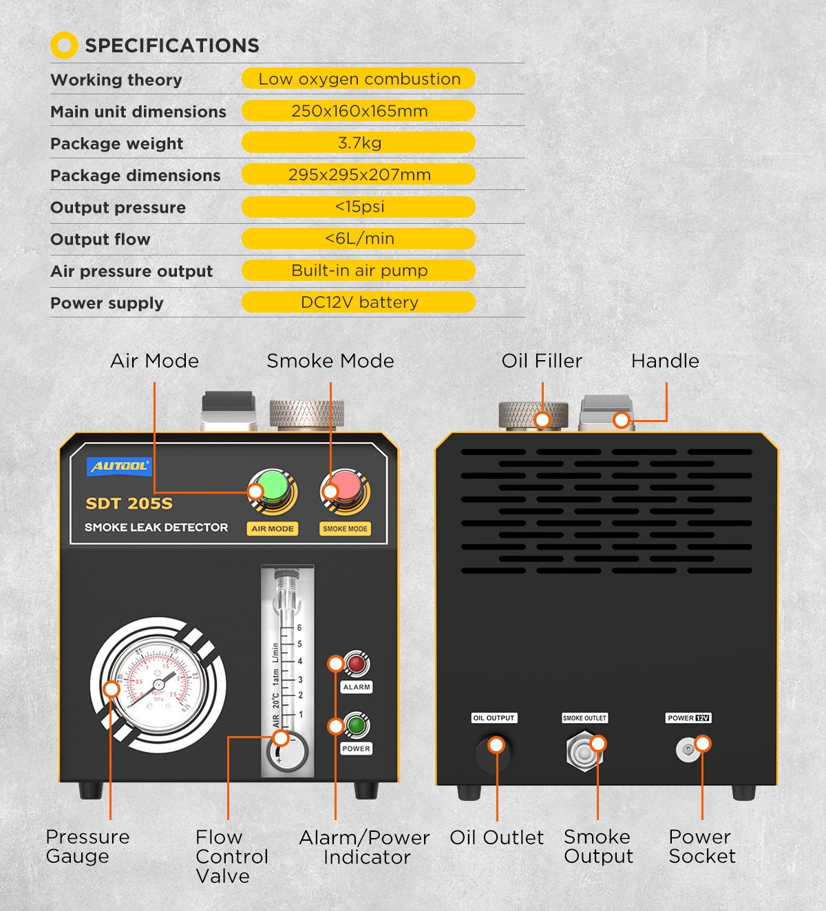 AUTOOL SDT205S Automotive Smoke Tester Features