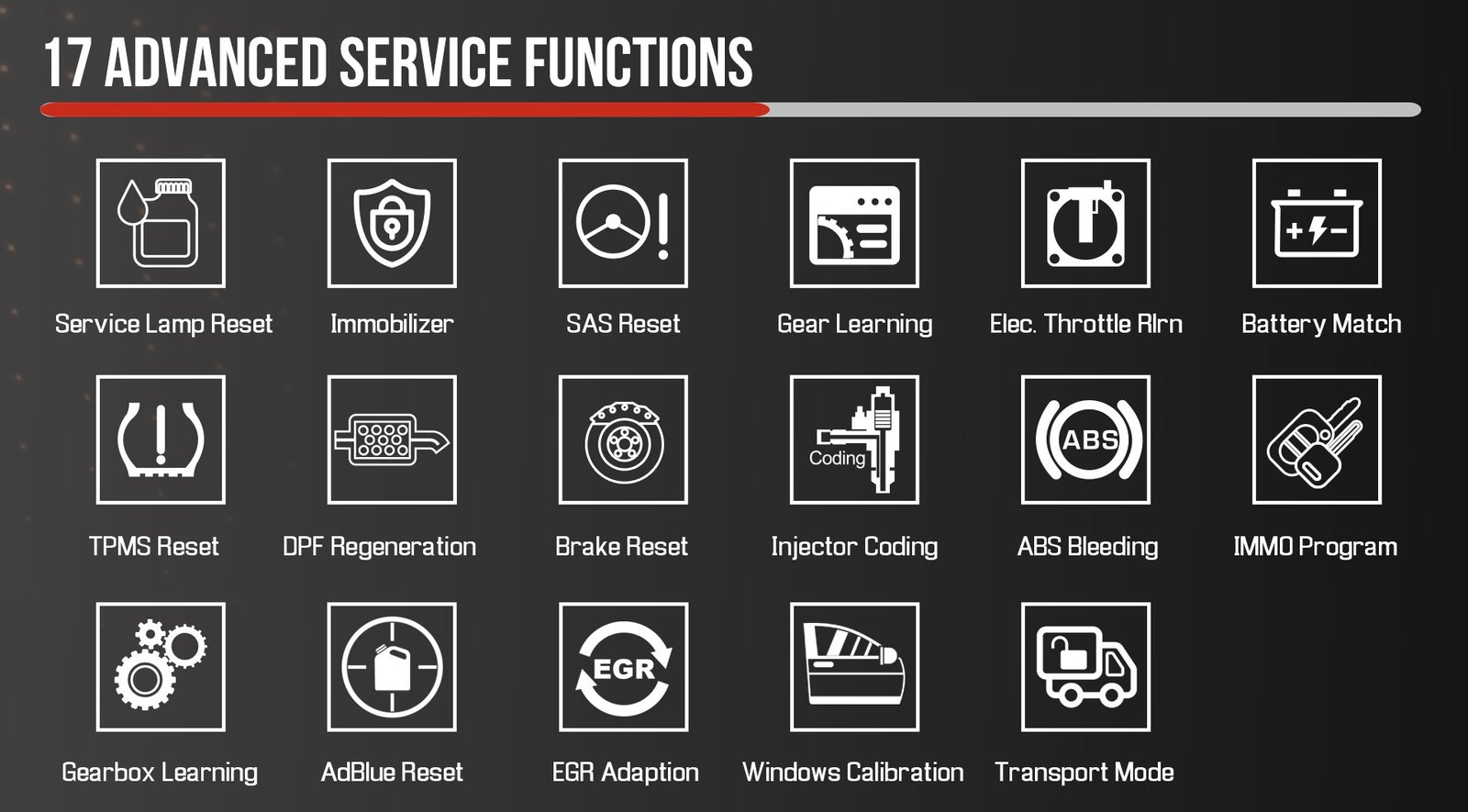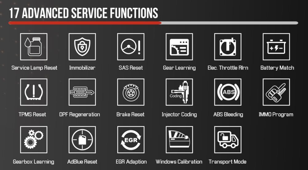 - Full diagnostic functionality includes comprehensive OBD II diagnostics, read/clear DTCs, bi-directional control, remote, diagnosis, live data streaming, coding etc.