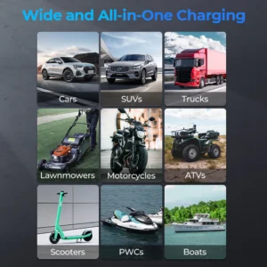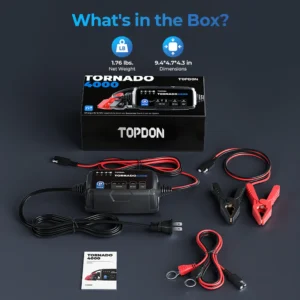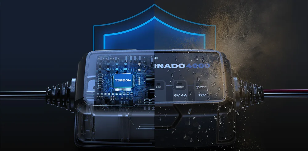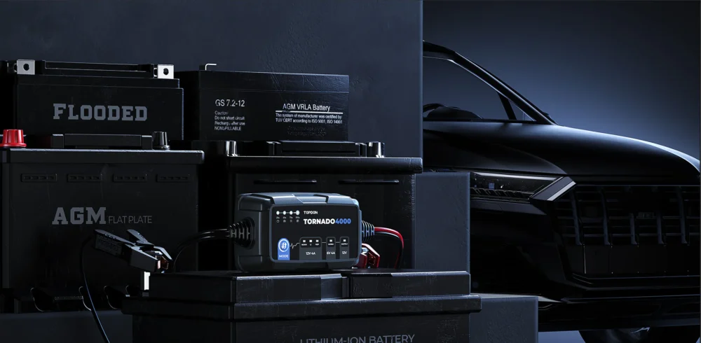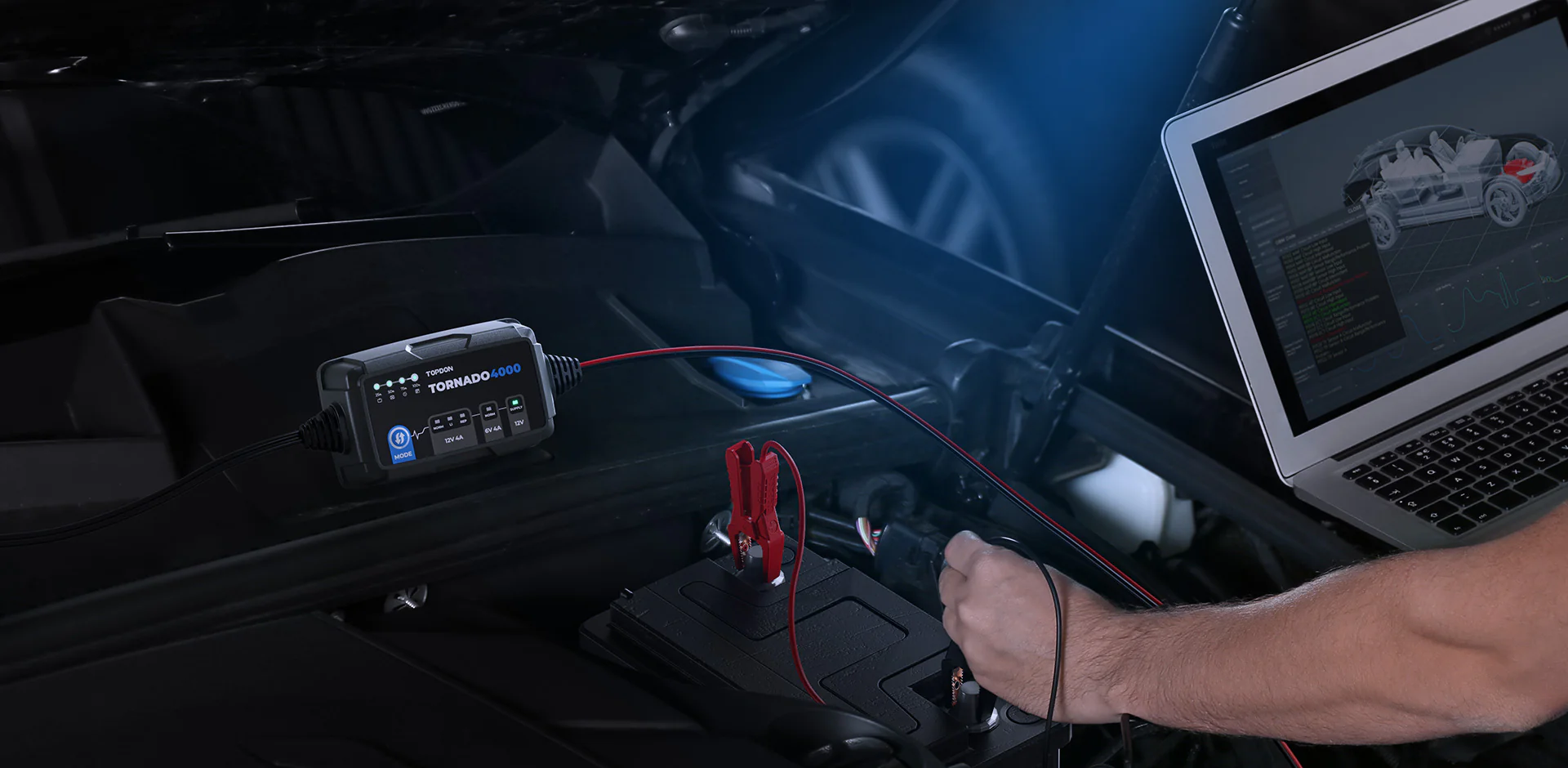 The Tornado4000 supports a wide selection of batteries ranging from 5Ah to 120Ah, compatible with all types of 6V & 12V lead-acid batteries, and 12V lithium batteries including LI, AGM, WET, GEL, MF, CAL, EFB.
