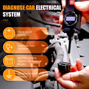 This car circuit detector tool identifies positive and negative terminals, preventing potential reverse polarity issues.