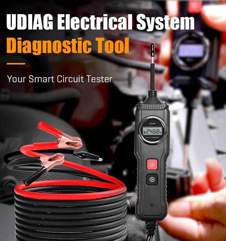 The UDIAG CD200 vehicle circuit detector is a professional-grade electrical diagnostic tool. It is suitable for diagnosing circuits with 6-40V power supply. It has a compact design and strong functionality, with reverse polarity and overload protection. This tool’s probe can be used for circuit continuity testing, voltage detection, polarity testing, and component activation. It can quickly detect short circuits, broken connections, or poor contact in vehicle electrical system components, assisting users in understanding the vehicle’s condition more quickly and accurately. It is a high-efficiency and advanced testing tool that can greatly improve user productivity.